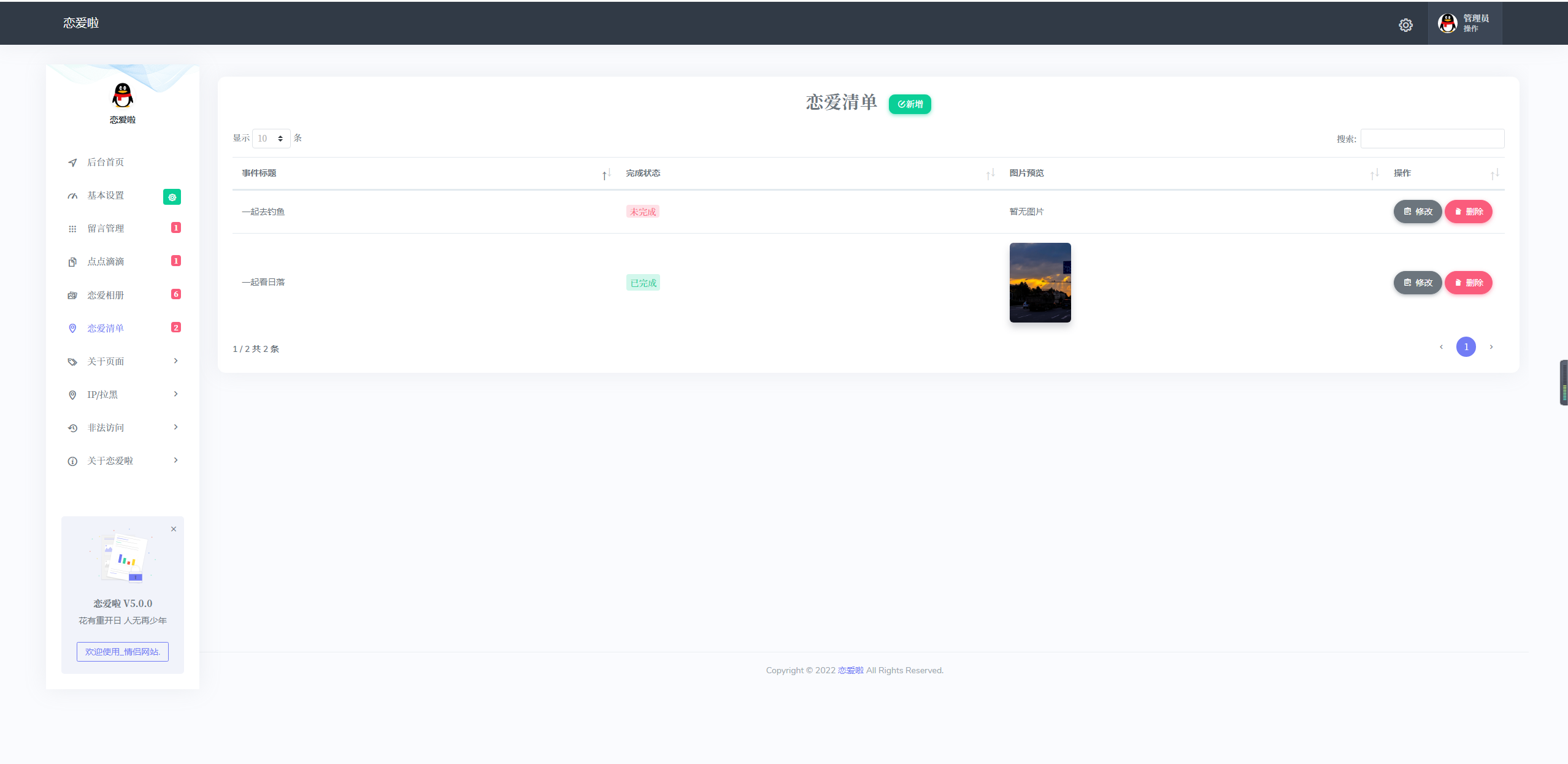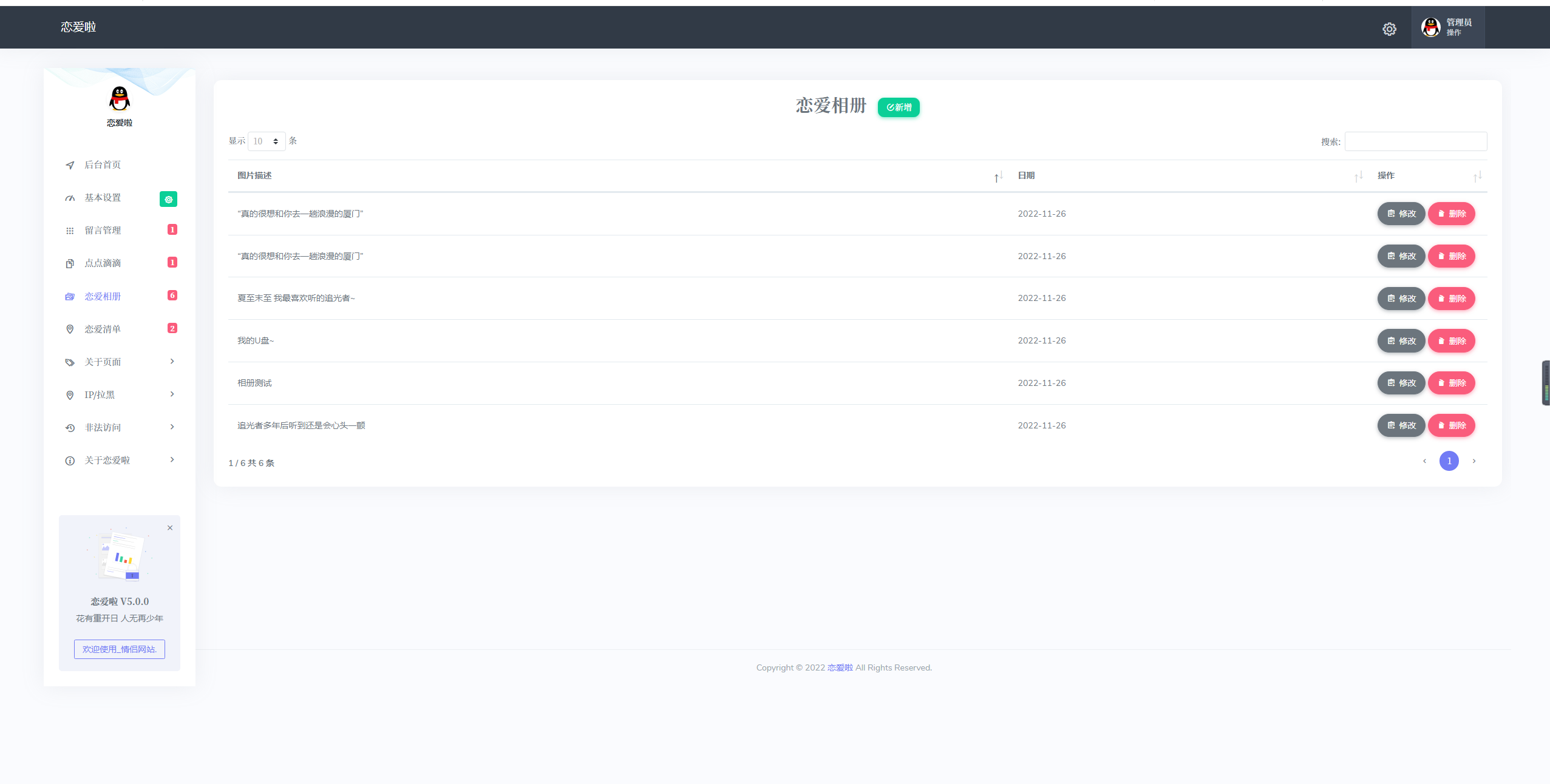 恋爱啦恋爱主题情侣博客网站,适合用于表白,情侣间的记录,可以设置网站访问密码,表白神器。